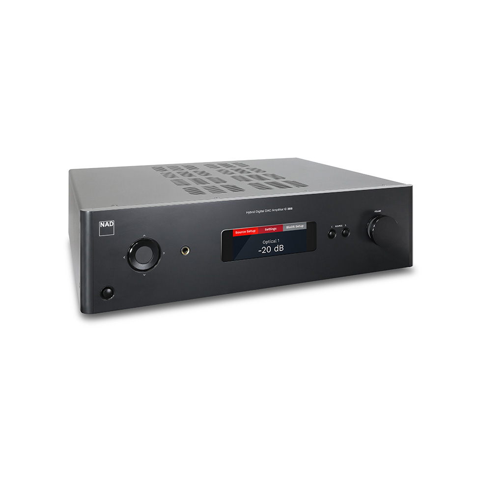 The C 388 Hybrid Digital DAC Amplifier is at the top of its class in the world of affordable amplification. An incredibly powerful amp, the C 388 employs NAD technologies like Asymmetrical PowerDrive™ to ensure that even the most demanding speakers can be driven to life-like listening levels without dynamic compression. Thanks to its advanced preamplifier circuit, the C 388 gives low noise at all volume settings, ensuring that you’ll be able to listen to your music without any distractions. Another technology that’s available to the C 388 is the BluOS™ module, a music management system that can stream your music library wirelessly across your home Wi-Fi network. Connect to the C 388 instantly with Bluetooth® to give you access to various streaming services. With the ability to accommodate a variety of sources both past and present, the C 388 is a remarkably flexible product that will become a core addition to your home audio system.